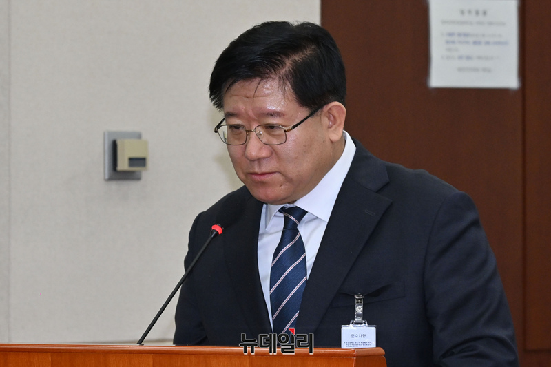 이호영 경찰청장 직무대행이 20일 오후 국회에서 열린 행정안전위원회의 서울서부지방법원 불법 폭력점거 시위사태 관련 긴급 현안 질의에서 업무보고를 하고 있다.