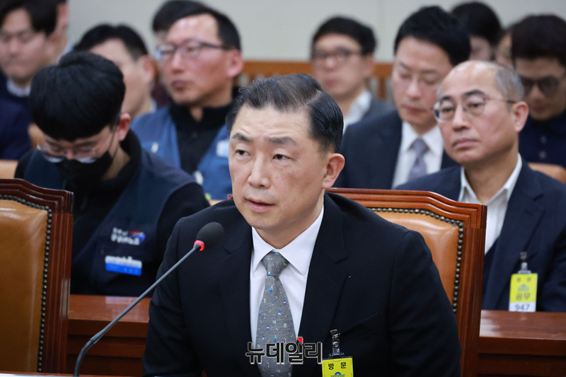 박현철 전 위니아전자 대표가 21일 오전 국회에서 열린 환경노동위원회의 쿠팡 택배노동자 근로 조건 개선·대유위니아그룹 임금체불 관련 청문회에서 의원들의 질문에 답하고 있다.