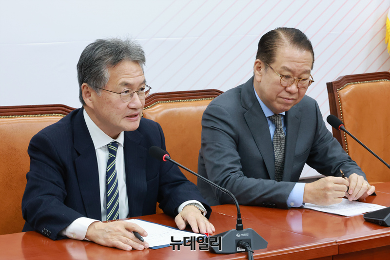 조셉 윤 주한미국대사대리가 21일 오후 국회에서 권영세 국민의힘 비상대책위원장을 예방해 발언하고 있다.