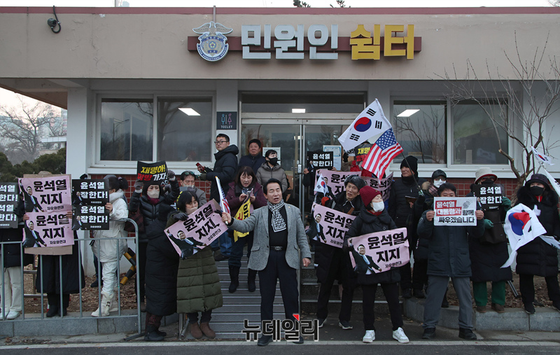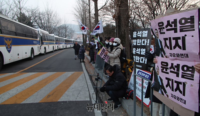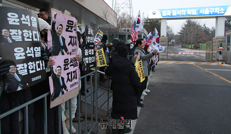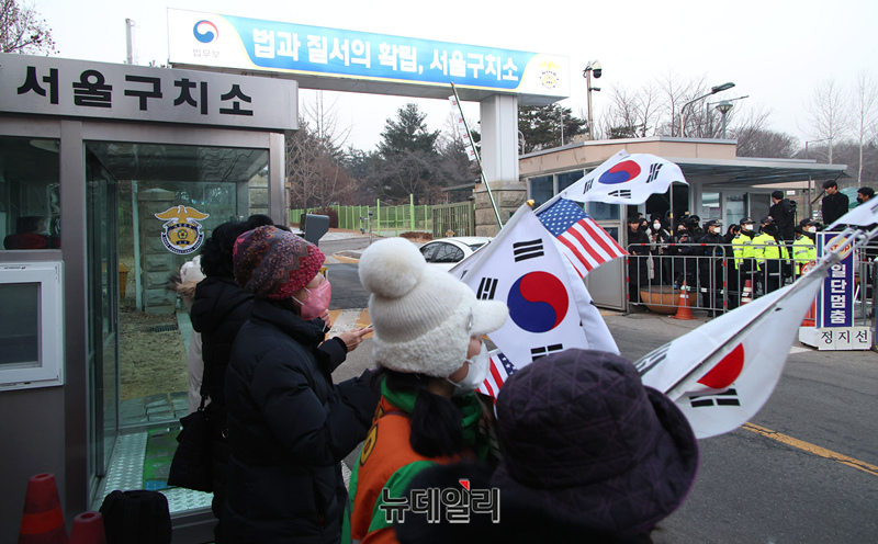 [포토] 서울구치소서 윤 대통령 기다리는 지지자들
