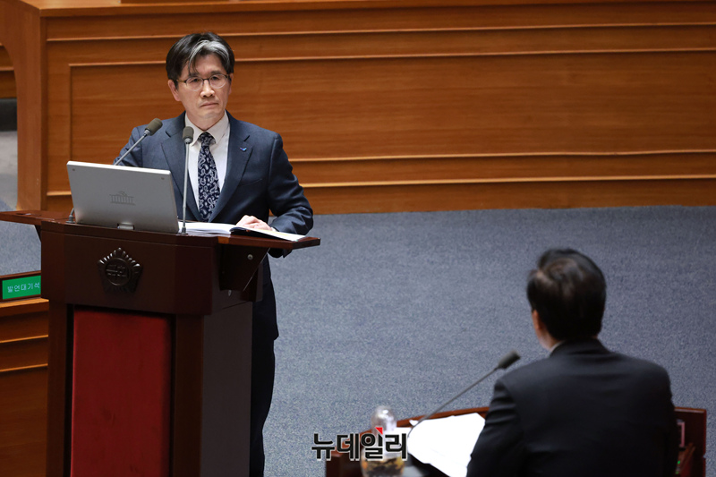 오동운 공수처장이 23일 오후 국회 본회의에서 열린 '서울서부지법 난입 사태' 관련 긴급 현안질문에서 의원들의 질문에 답하고 있다.
