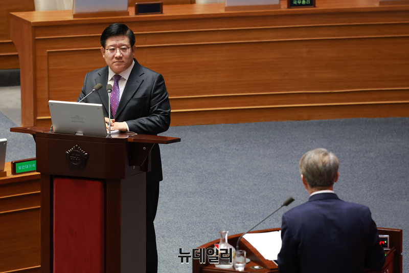 이호영 경찰청 차장이 23일 오후 국회 본회의에서 열린 '서울서부지법 난입 사태' 관련 긴급 현안질문에서 의원들의 질문에 답하고 있다.