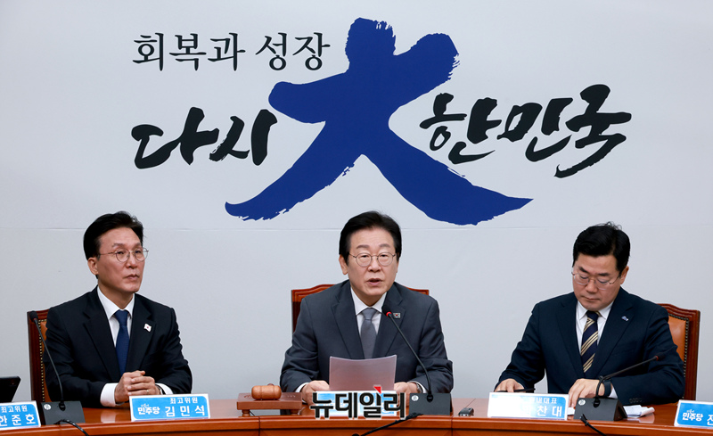 이재명 더불어민주당 대표가 31일 오전 국회에서 열린 최고위원회의에서 모두발언을 하고 있다.