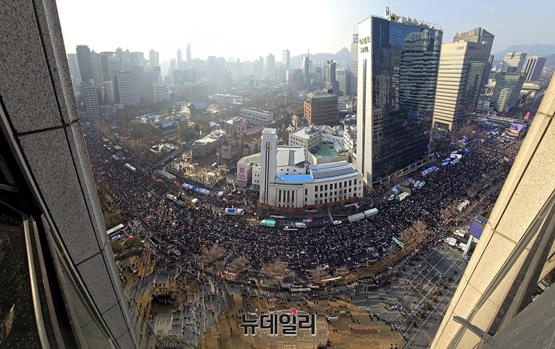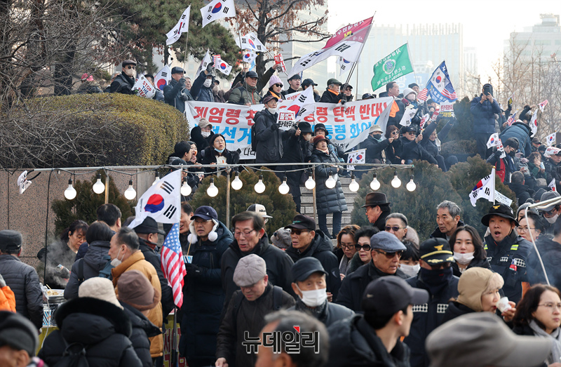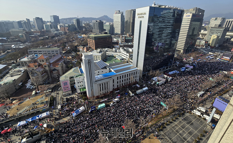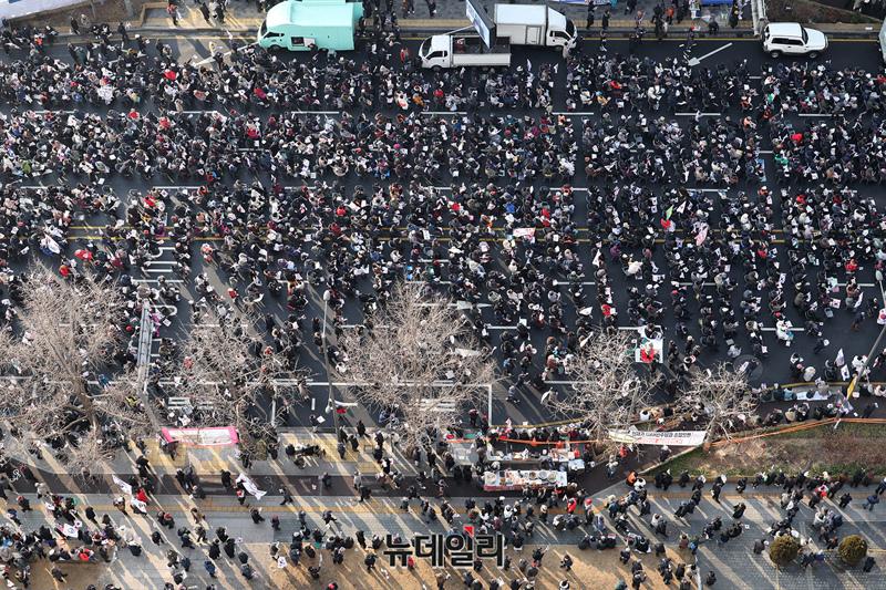 윤석열 대통령 석방을 촉구하는 광화문 국민대회가 1일 오후 서울 광화문 광장에서 진행되고 있다. 특히 설 연휴가 끝나고 대통령 탄핵심판 5차 변론일을 앞두고 광화문 광장에는 윤 대통령 지지자들이 전국에서 대거 몰렸다. 같은 시각 전국 각지에서 윤 대통령 탄핵반대 촉구 집회가 동시에 진행됐다.