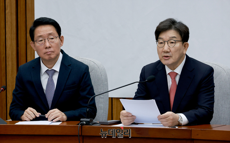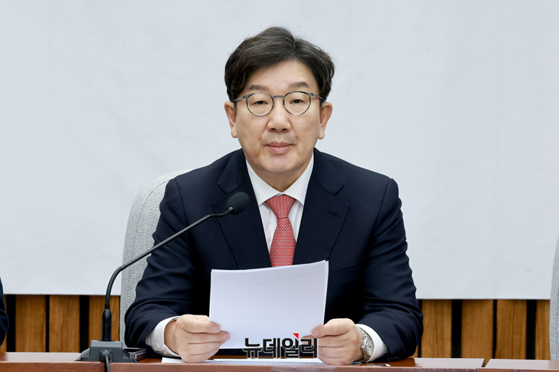 권성동 국민의힘 원내대표가 4일 오전 국회에서 열린 원내대책회의에서 모두발언을 하고 있다.