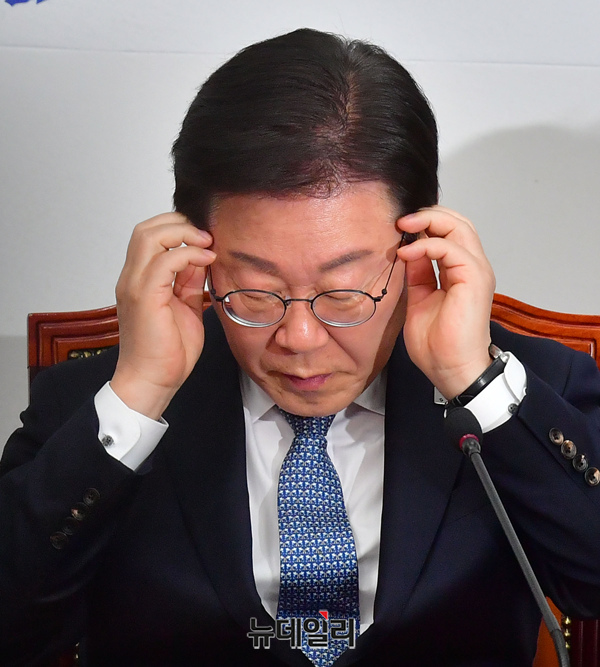 [포토] 안경 고쳐 쓰는 이재명 더불어민주당 대표
