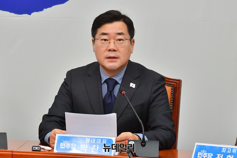 박찬대 더불어민주당 원내대표가 5일 오전 국회에서 열린 최고위원회의에서 모두발언을 하고 있다.