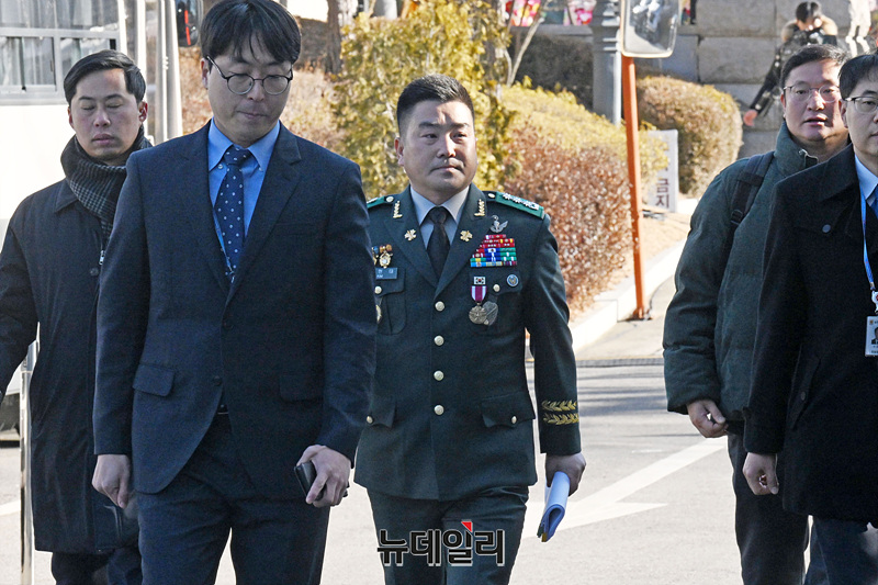 12·3 비상계엄 사태 당시 국회에 투입됐던 707특수임무단을 이끄는 김현태 단장이 6일 오전 서울 종로구 헌법재판소에서 열린 탄핵 심판 6차 변론기일에 증인 출석하고 있다. (사진=공동취재단)