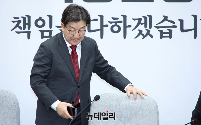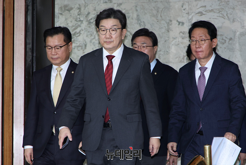 권성동 국민의힘 원내대표가 7일 오전 서울 여의도 국회에서 열린 원내대책회의에 참석하고 있다.