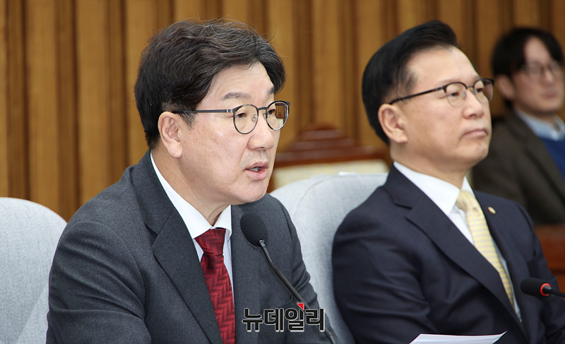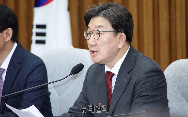 권성동 국민의힘 원내대표가 7일 오전 서울 여의도 국회에서 열린 원내대책회의에서 모두발언을 하고 있다.