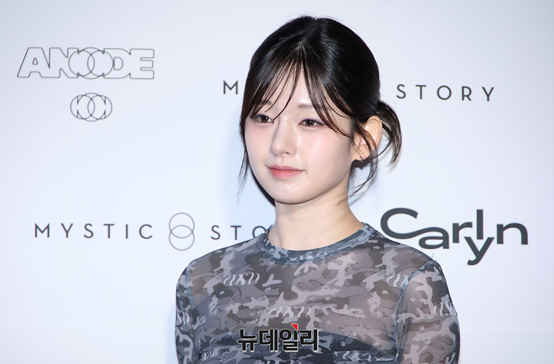 모델 하지나가 7일 오후 서울 동대문디자인플라자에서 열린 2025 F/W 서울패션위크 덕다이브(DUCKDIVE) 포토월에서 포즈를 취하고 있다.