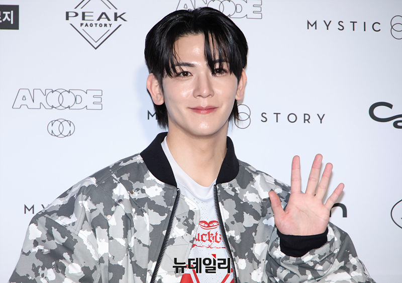 배우 건우가 7일 오후 서울 동대문디자인플라자에서 열린 2025 F/W 서울패션위크 덕다이브(DUCKDIVE) 포토월에서 포즈를 취하고 있다.