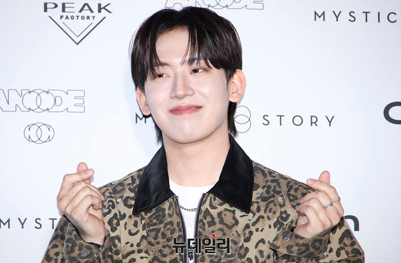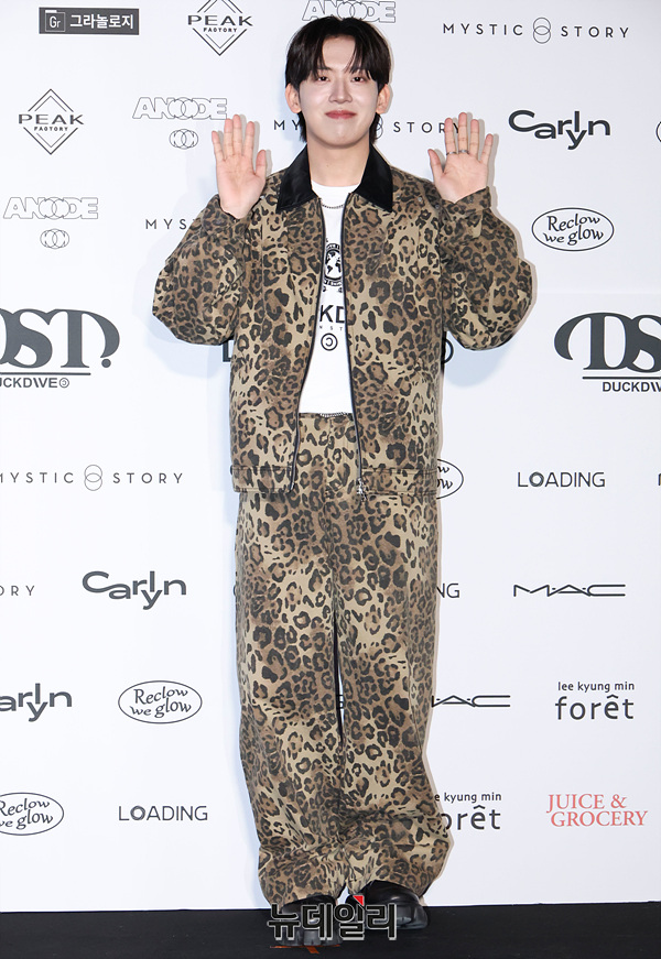 유튜버 허성범이 7일 오후 서울 동대문디자인플라자에서 열린 2025 F/W 서울패션위크 덕다이브(DUCKDIVE) 포토월에서 포즈를 취하고 있다.
