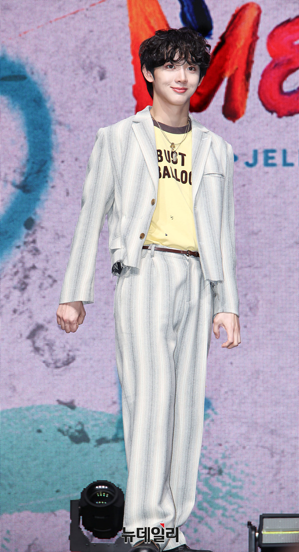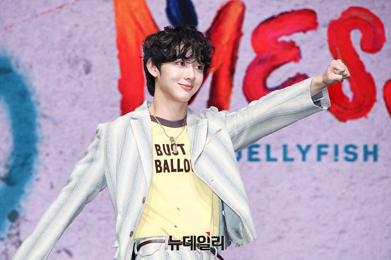 그룹 이븐 유승언이 10일 오후 서울 광진구 예스24 라이브홀에서 열린 미니4집 '핫 메스(Hot Mess)' 발매 기념 쇼케이스에서 포즈를 취하고 있다.