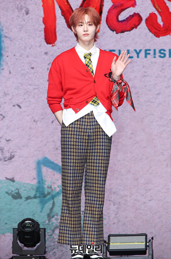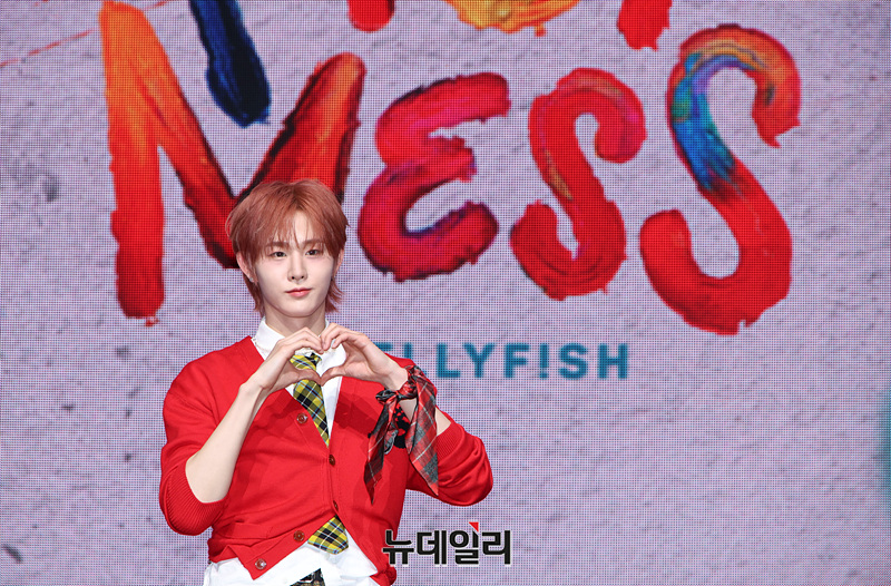 그룹 이븐 지윤서가 10일 오후 서울 광진구 예스24 라이브홀에서 열린 미니4집 '핫 메스(Hot Mess)' 발매 기념 쇼케이스에서 포즈를 취하고 있다.