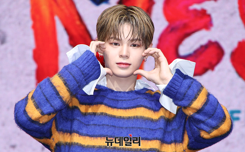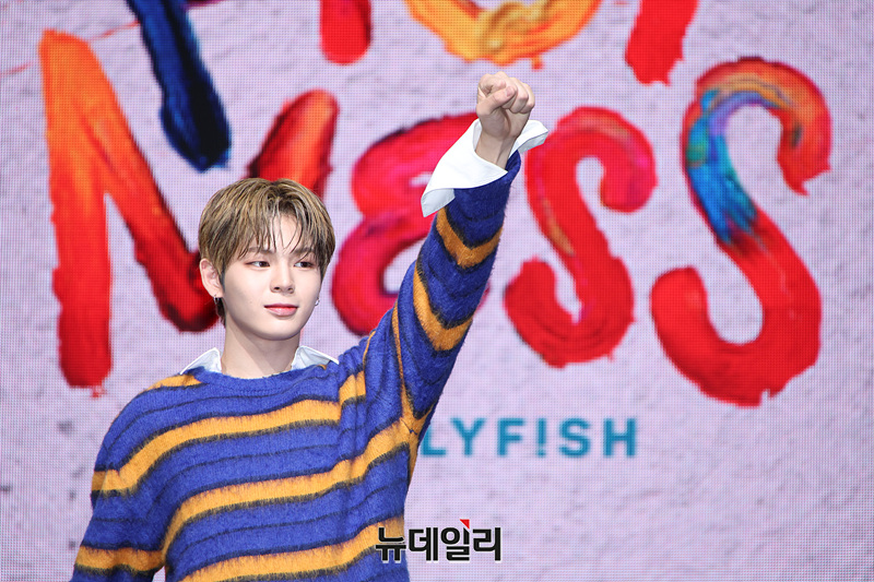 그룹 이븐 문정현이 10일 오후 서울 광진구 예스24 라이브홀에서 열린 미니4집 '핫 메스(Hot Mess)' 발매 기념 쇼케이스에서 포즈를 취하고 있다.