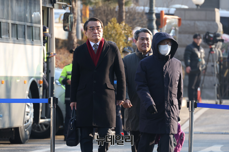 윤석열 대통령 측 변호인인 배보윤 변호사가 11일 오전 서울 종로구 헌법재판소에서 열린 윤석열 대통령 탄핵 심판 7차 변론기일에 출석하고 있다. (사진=공동취재단)