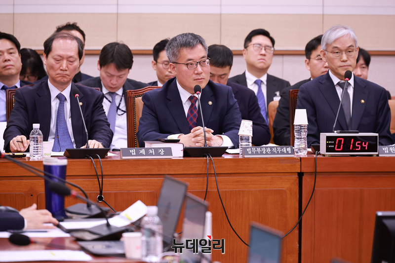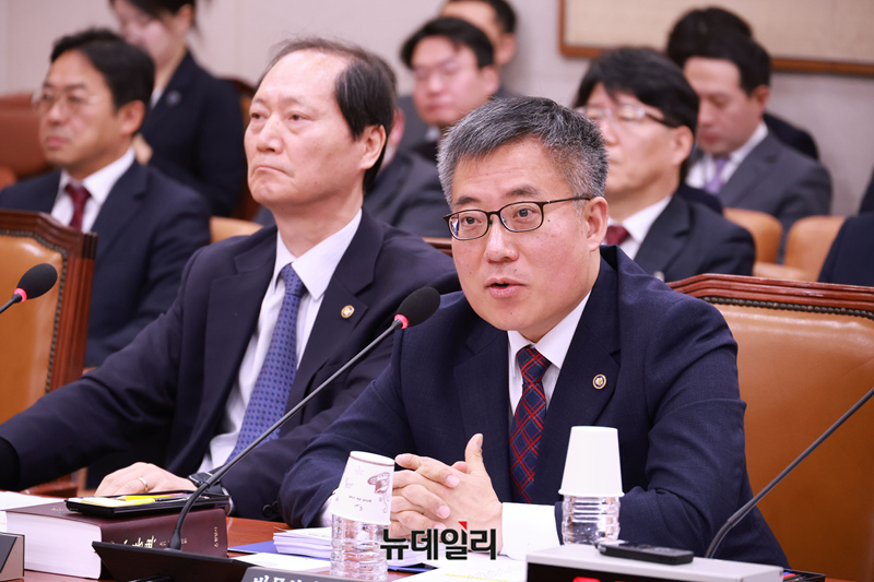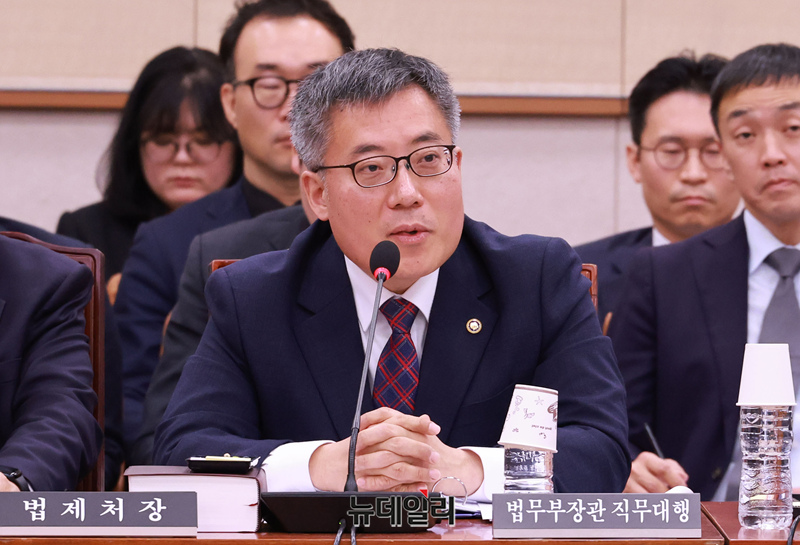 김석우 법무부 장관 직무대행이 12일 오전 국회에서 열린 법제사법위원회 전체회의에서 의원들의 질의에 답하고 있다.