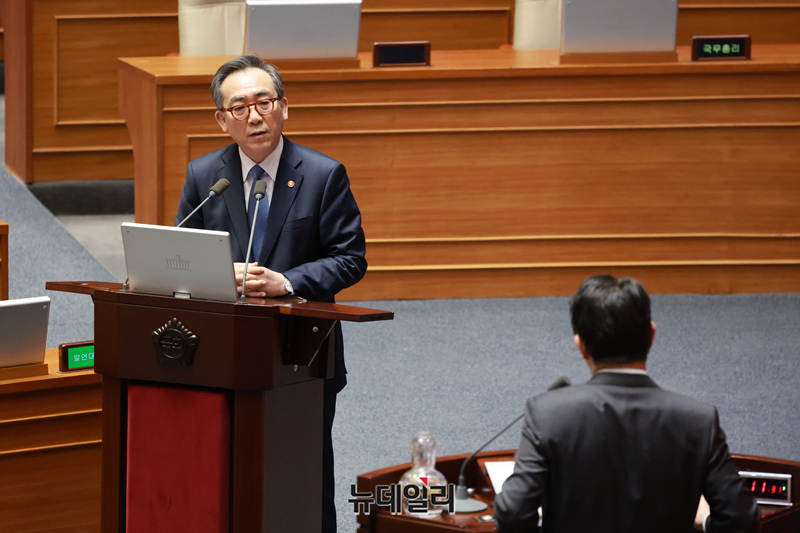 조태열 외교부 장관이 12일 오후 국회에서 열린 정치·외교·통일·안보 분야 대정부질문에 참석해 의원들의 질문에 답하고 있다.