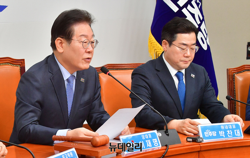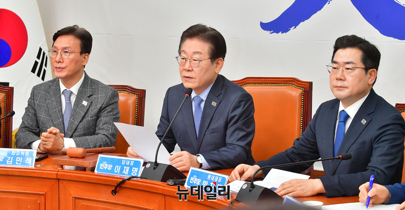 이재명 더불어민주당 대표가 14일 오전 국회에서 열린 최고위원회의에서 모두발언을 하고 있다.