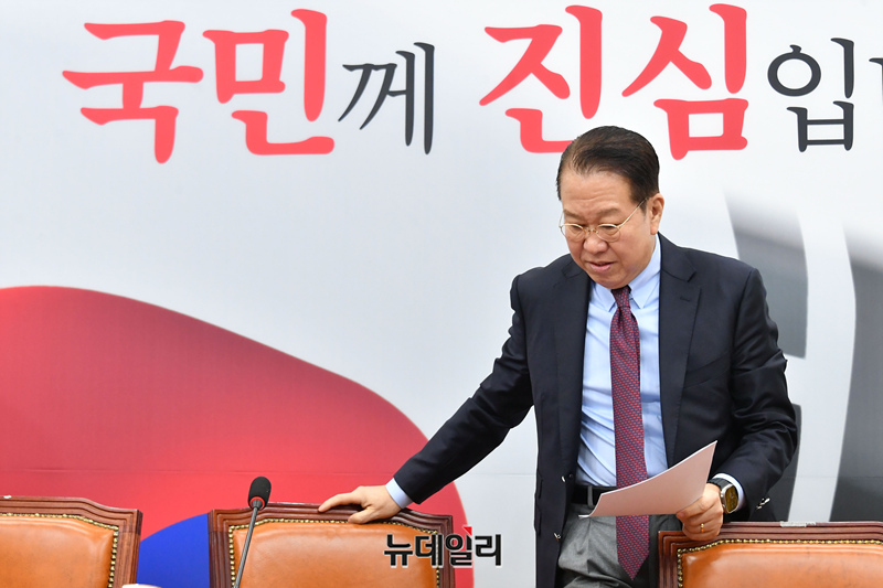 권영세 국민의힘 비상대책위원장이 17일 오전 국회에서 열린 비상대책위원회의에 참석하고 있다.