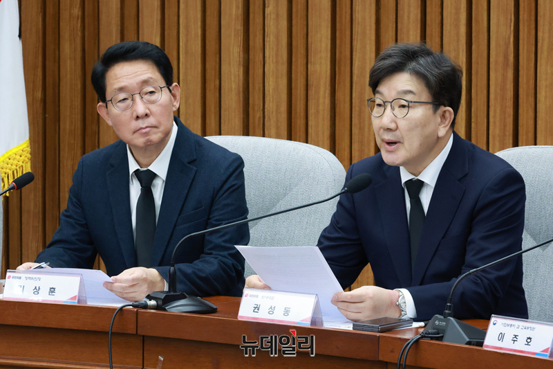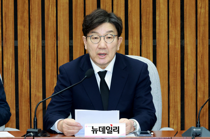 권성동 국민의힘 원내대표가 17일 국회에서 열린 학교 안전 강화를 위한 당정협의회에서 모두발언을 하고 있다.