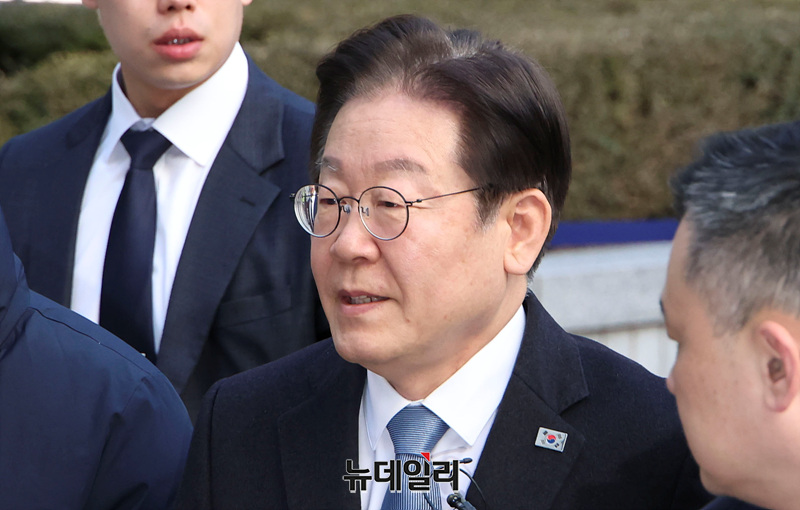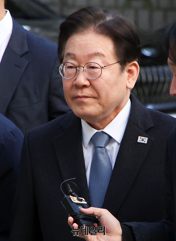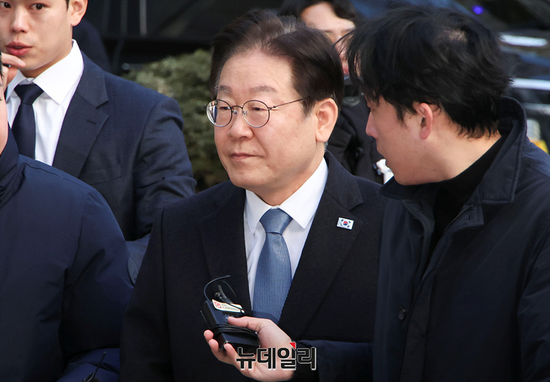 이재명 더불어민주당 대표가 18일 오전 서울 서초구 서울중앙지방법원에서 열린 '대장동 배임·성남FC 뇌물' 관련 1심 속행 공판에 출석하고 있다.