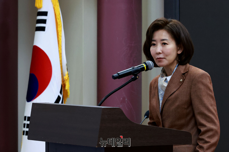 나경원 국민의힘 의원이 18일 오전 국회 의원회관에서 열린 '창립 30주년 여의도연구원 연속토론회, 국민 위에 군림하는 국가기관 정상인가?'에서 축사를 하고 있다.