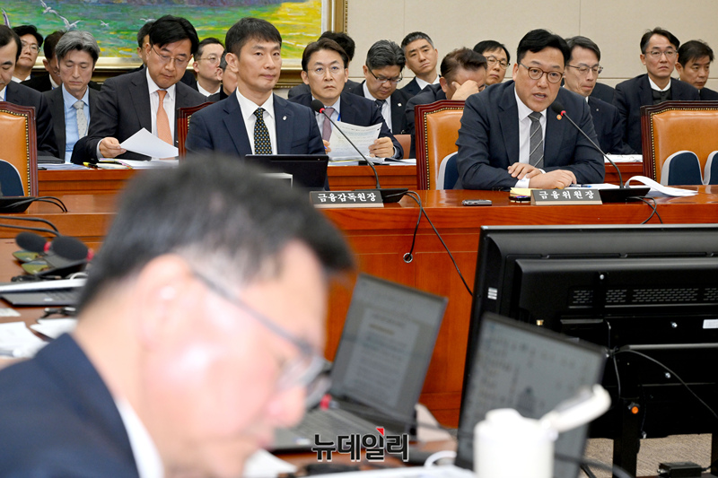 김병환 금융위원장이 18일 국회에서 열린 정무위원회 전체회의에서 의원들의 질의에 답변하고 있다.