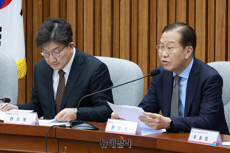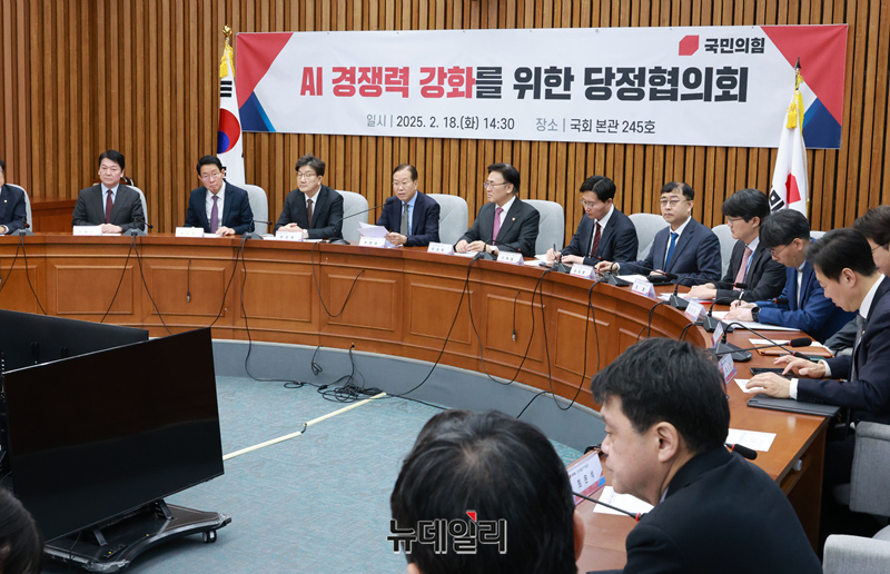 권영세 국민의힘 비대위원장이 18일 국회에서 열린 AI 경쟁력 강화를 위한 당정협의회에서 모두발언을 하고 있다.