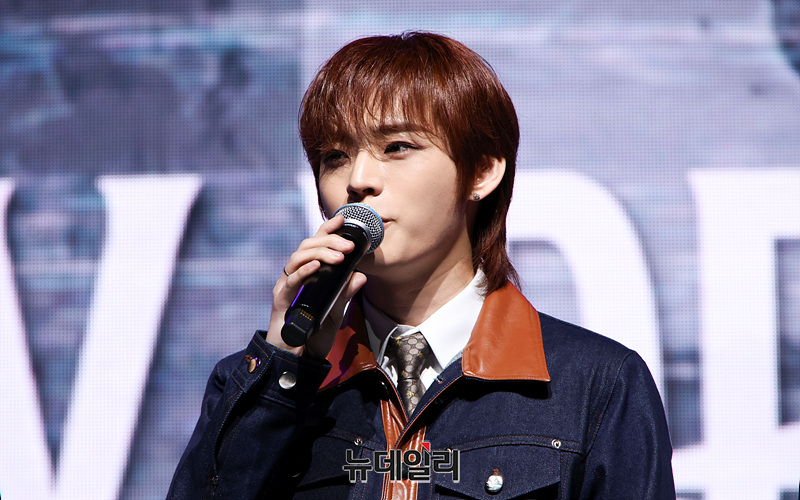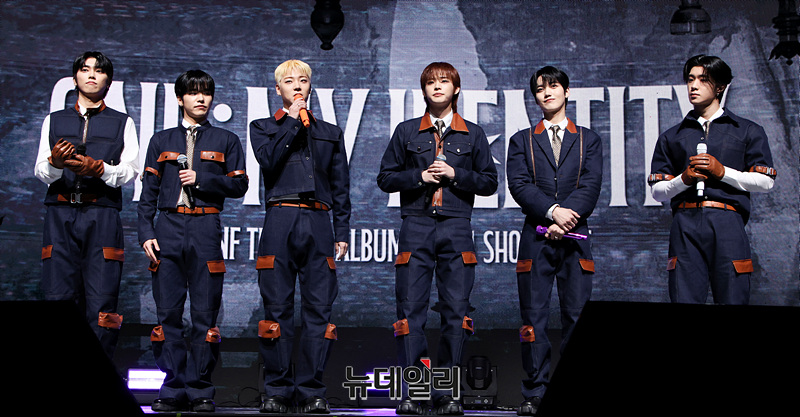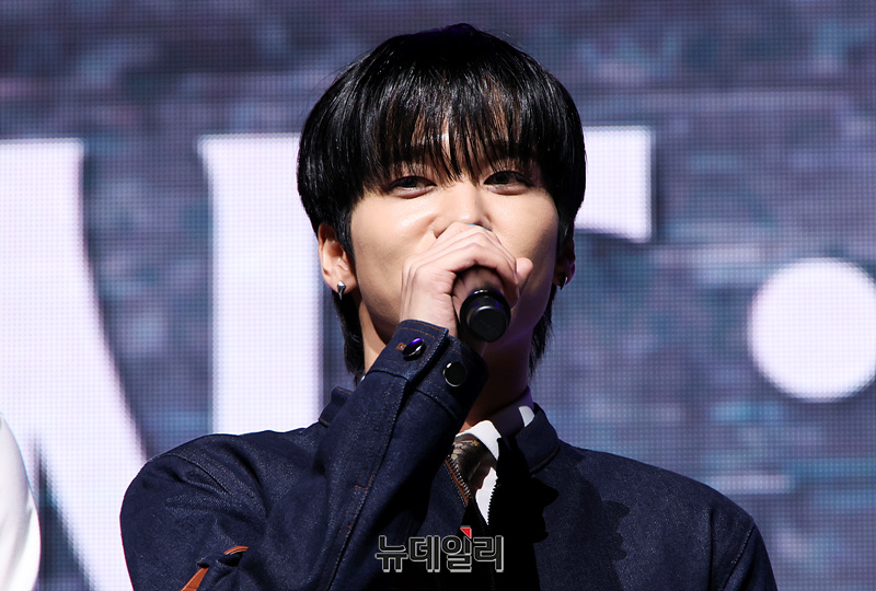 그룹 온앤오프(ONF)가 18일 오후 서울 용산구 블루스퀘어에서 열린 정규 2집 'Part.1 'ONF:MY IDENTITY' 발매 기념 쇼케이스에서 인사말을 하고 있다.