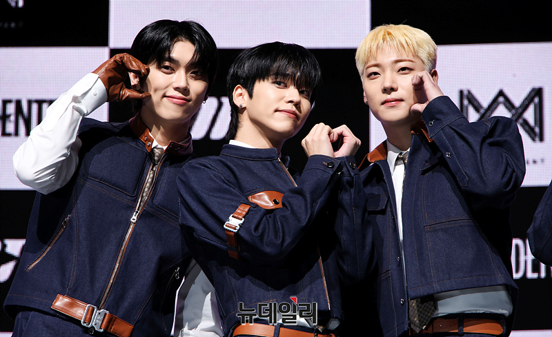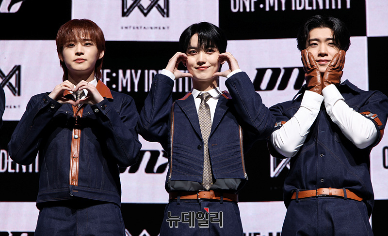 그룹 온앤오프(ONF)가 18일 오후 서울 용산구 블루스퀘어에서 열린 정규 2집 'Part.1 'ONF:MY IDENTITY' 발매 기념 쇼케이스에서 포즈를 취하고 있다.