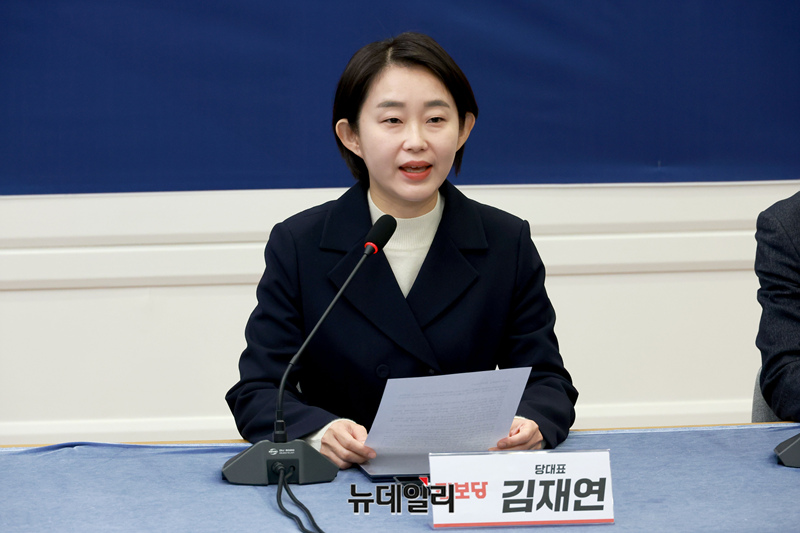 김재연 진보당 상임대표가 19일 국회에서 열린 '내란종식 민주헌정수호 새로운 대한민국 원탁회의' 출범식에서 발언을 하고 있다.