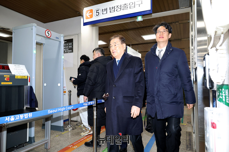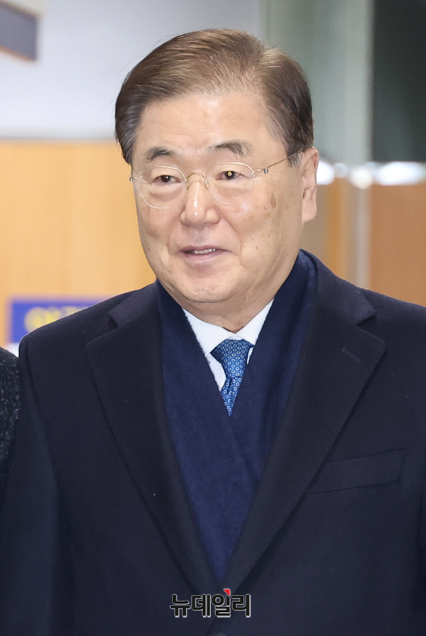 '탈북 어민 강제 북송 사건'으로 기소된 정의용 전 청와대 국가안보실장이 19일 오후 서울 서초구 서울중앙지법에서 열린 선고 공판에 출석하고 있다.