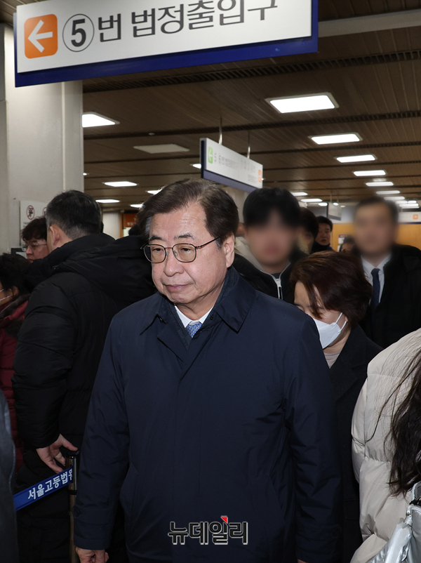 '탈북 어민 강제 북송 사건'으로 기소된 서훈 전 청와대 국가안보실장이 19일 오후 서울 서초구 서울중앙지법에서 열린 선고 공판에 출석하고 있다.