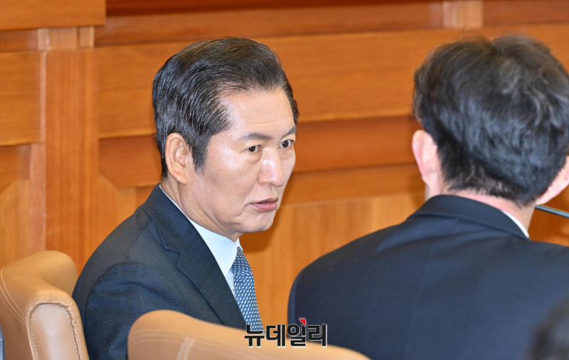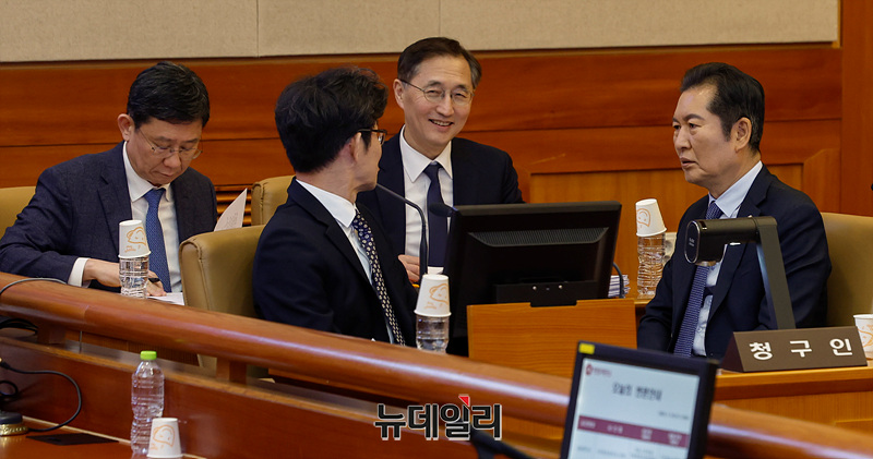 정청래 탄핵소추위원장을 비롯한 국회 측 변호인단이 19일 오후 서울 종로구 헌법재판소 대심판정에서 열린 한덕수 국무총리 탄핵심판 1차 변론에 참석해 자리하고 있다.