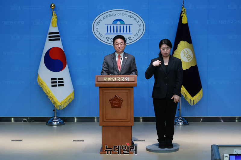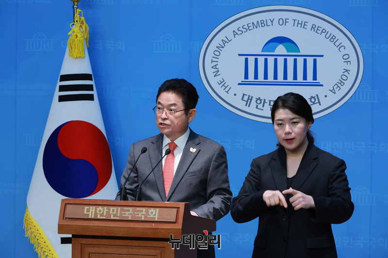 이철우 경북도지사가 19일 오후 국회 소통관에서 열린 윤석열 대통령 탄핵 정국 관련 기자회견에서 입장 발표를 하고 있다.