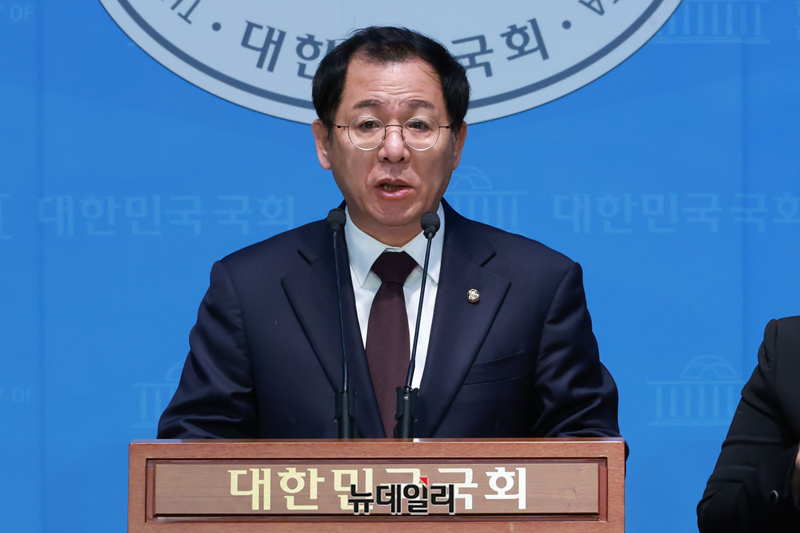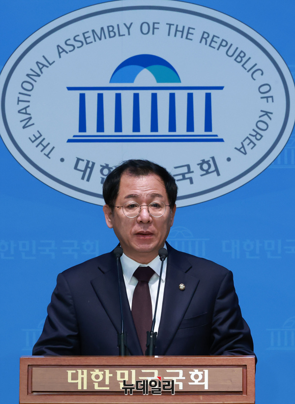 국민의힘 미디어특별위원회 위원장 이상휘 의원이 20일 오전 국회 소통관에서 故 오요안나 씨 관련 기자회견을 하고 있다.