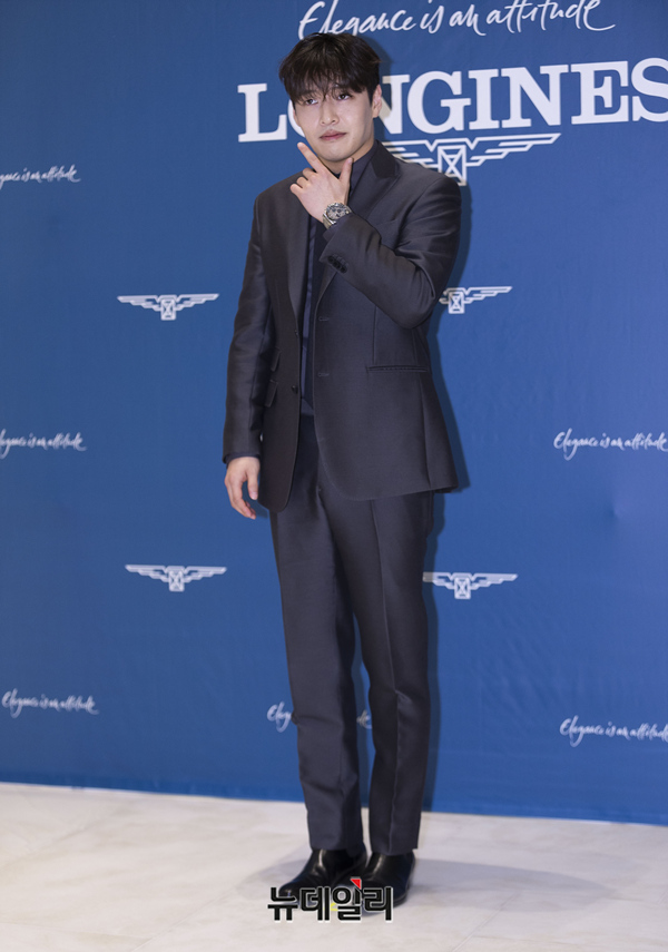배우 강하늘이 20일 오전 경기 성남시 현대백화점 판교점에서 열린 워치 메이커 론진 부티크 리뉴얼 오픈행사에서 포즈를 취하고 있다.
