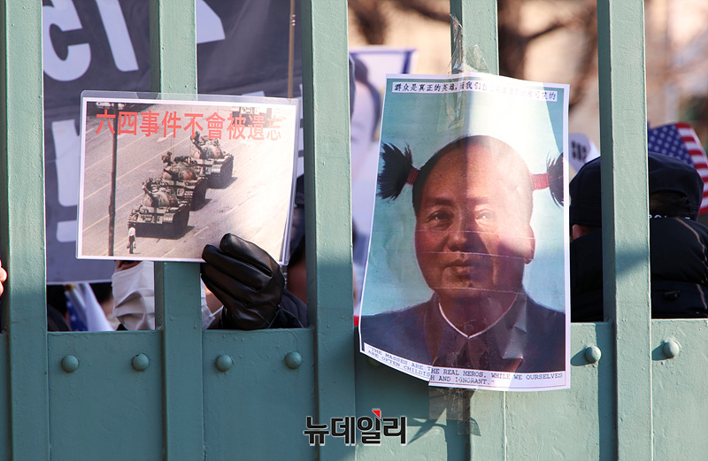 [포토] 고려대 붙은 '탱크맨·마오쩌둥'