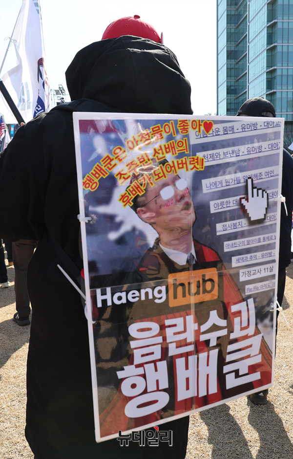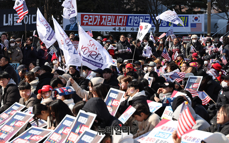 윤석열 대통령 탄핵반대 ‘세이브코리아(Save Korea) 국가비상기도회’ 참가자가 22일 오후 대전시청 남문광장에서 열린 국가기도회에서 MKGA 모자를 쓰고 자리하고 있다.이날 기도회에는 손현보 목사(세이브코리아 대표), 전한길 강사(대한민국 1타강사), 김병철 전 치안감(경찰청 수사국장), 김근태 전 육군대장(제1야전군사령관), 장동혁 국회의원(국민의힘, 보령‧태안), 김소연 변호사, 개그맨 김영민 씨 등이 참석해 메시지를 전한다.헌법재판소는 윤석열 대통령 탄핵심판의 최종 변론 일정을 2월 25일로 지정했다. (대전=정상윤 기자)