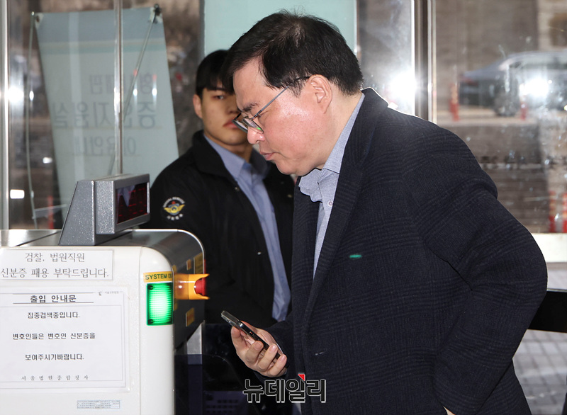 유동규 전 성남도시개발공사 기획본부장이 24일 오전 서울 서초구 서울중앙지방법원에서 열린 '특정범죄가중처벌등에관한법률위반(뇌물) 등 혐의' 공판에 출석하고 있다.