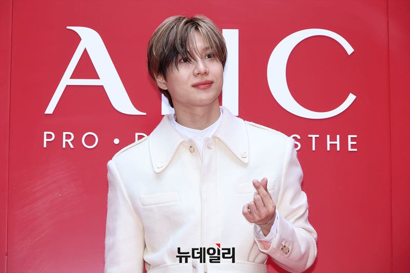 그룹 샤이니 태민이 27일 오전 서울 성동구 'AHC 스킨게임 T-샷' 팝업스토어에서 열린 포토월에서 포즈를 취하고 있다.이번 '스킨 게임 T-샷' 팝업 스토어에서는 1층과 2층에서 '0x 퀴즈' AR 필터를 활용한 'T-샷 챌린지'와 레이저건 게임 'T-샷' 등 다양한 미션을 통해 'T괄사 아이크림'의 특장점을 체험할 수 있다. 'AHC 마스터 라운지'에서는 AHC의 3스텝 케어 제품 체험 및 구매가 가능하다. 팝업은 3월 3일까지 운영된다.