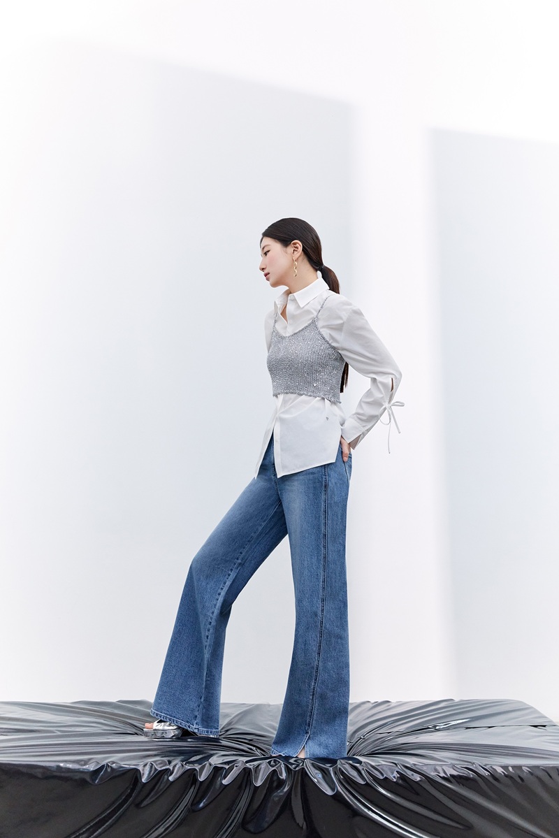 또한 진주 포인트가 더해진 데님 팬츠를 활용한 데님 온 데님 스타일링과, 레오파드 패턴의 자켓을 활용한 데님 롱 스커트 스타일링을 완벽하게 소화해 눈길을 사로잡고 있다. -