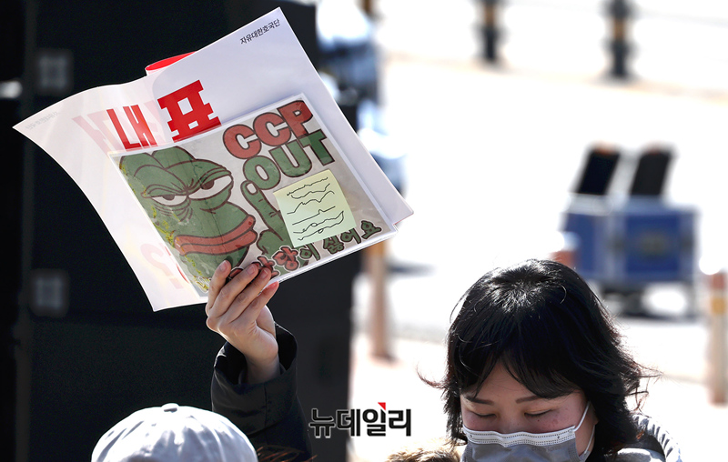 [포토] 건국대 시국선언에 등장한 '멸공' 피켓