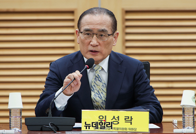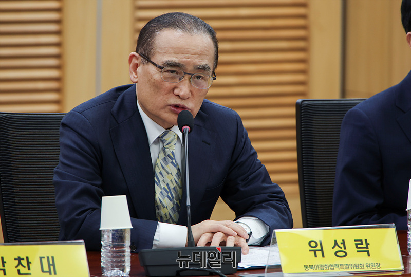 위성락 더불어민주당 의원이 28일 오전 서울 여의도 국회 의원회관에서 열린 더불어민주당 동북아평화협력특별위원회 출범식에서 인사말을 하고 있다.
