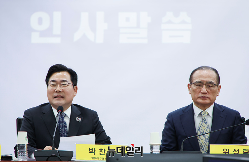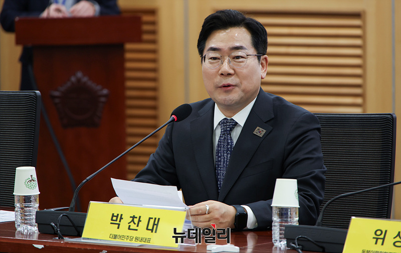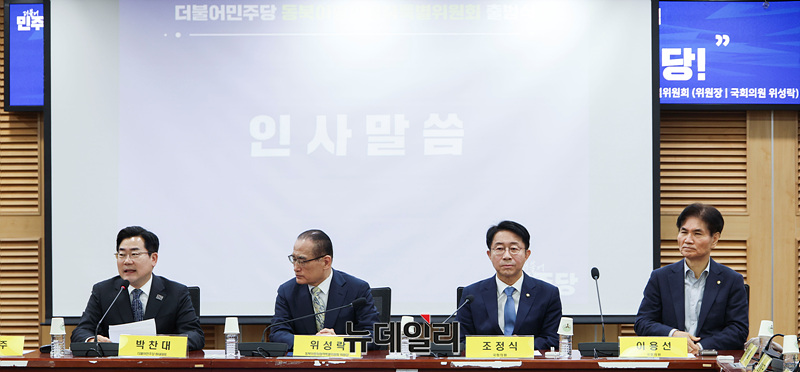 박찬대 더불어민주당 원내대표가 28일 오전 서울 여의도 국회 의원회관에서 열린 더불어민주당 동북아평화협력특별위원회 출범식에서 인사말을 하고 있다.