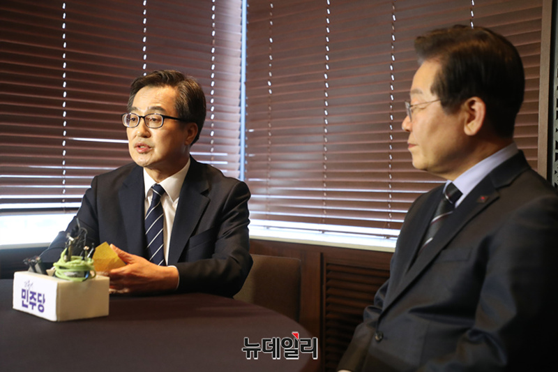 이재명 더불어민주당 대표와 김동연 경기도지사가 28일 서울 여의도의 한 식당에서 만나 환담을 나누고 있다.