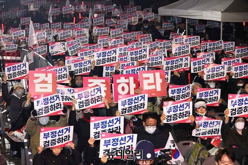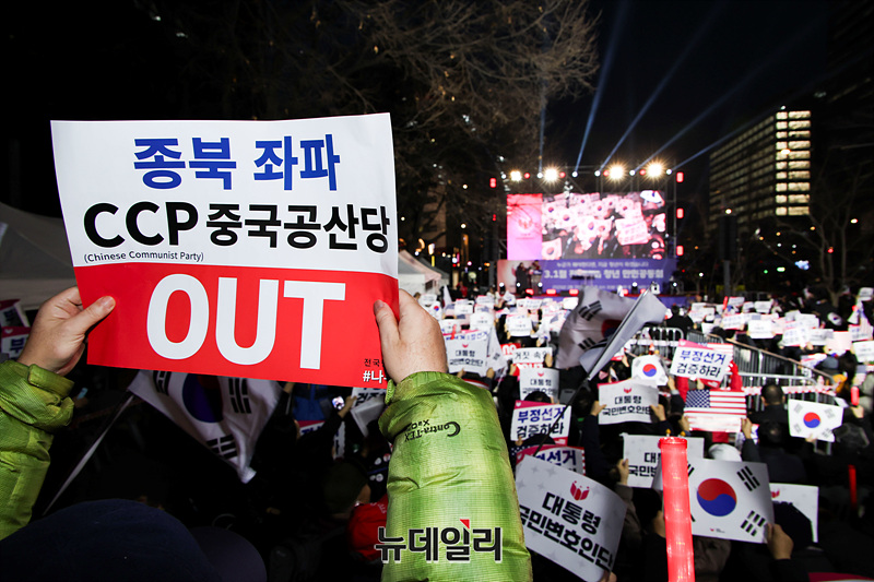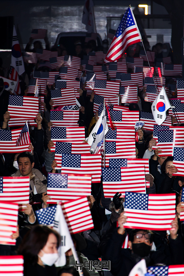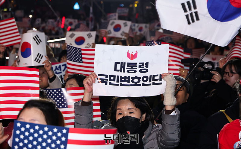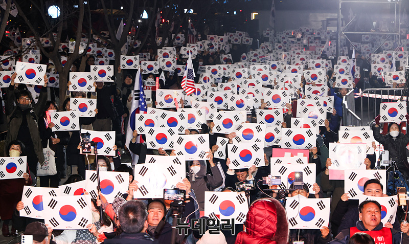 19만여 명이 가입한 윤석열 대통령 지지자 모임 '대통령 국민변호인단'이 3.1절을 하루 앞둔 28일 오후 서울 광화문 광장에서 '3.1절 전야집회 청년 만인공동회'를 진행하고 있다.'2.28 청년 만민공동회 집회'에는 이른 저녁부터 젊은 청년들이 집결해 윤 대통령의 탄핵 반대와 구속 취소를 외쳤다. 이들은 윤 대통령이 탄핵심판 최후변론에서 언급했던 "누군가 해야 하는 일이라면 바로 지금 제가 하겠습니다"라는 문구를 인용, '누군가 해야 한다면, 지금 청년들이 하겠습니다'를 슬로건으로 내걸었다.