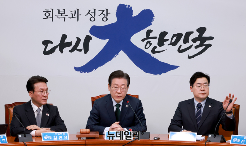 이재명 더불어민주당 대표가 5일 오전 국회에서 열린 최고위원회의에서 모두발언을 하고 있다.